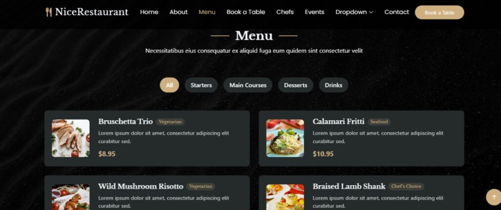 A visually appealing and easy-to-navigate website for restaurants, highlighting menus, reservations, and customer engagement features.